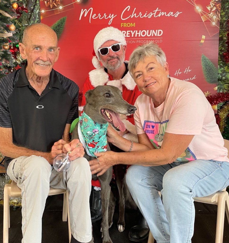 Above: Ian and Liz from Bundaberg, with their special Christmas greyhound gift Sally.
