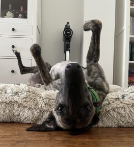 This clever lad can handle all types of stairs, loves a little playtime, and has a special talent for emptying the toy box to find just the right toy for the moment. On walks, Joe is the ultimate social greeter — he stops to say hello to everyone he sees, hoping for a quick pat or a friendly sniff. He enjoys at least one walk a day but will happily join you for more if you’re up for it.